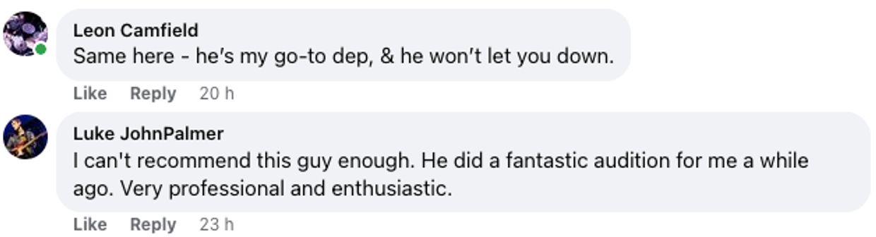 Leon Camfield, bass player for the Simon and Garfunkel Story (UK/Worldwide) and Luke JohnPalmer, cruise/function/multi instrumentalist.